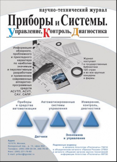 Ежемесячный журнал «Приборы и системы. Управление, контроль, диагностика» — это окно в новые технологии автоматизации производства, мир современной контрольно-измерительной и диагностической техники.